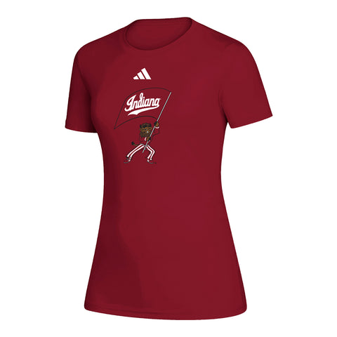 Celebrate the return of Hoosier the Bison with this red ladies t-shirt. Showing Hoosier the Bison waiving the Indiana flag, it's the perfect tee to stay comfortable and show your love for the Hoosiers!
